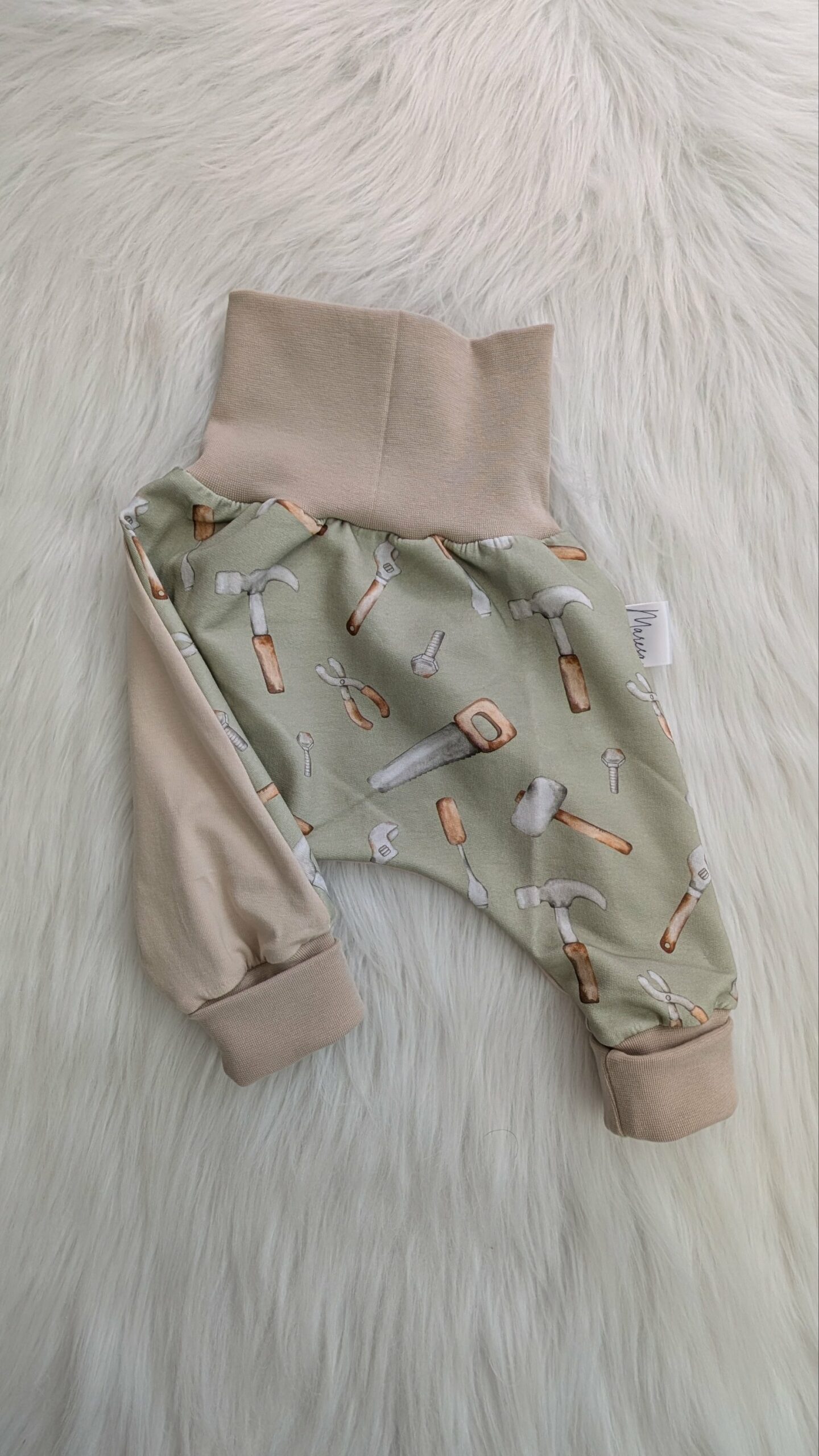 Suchst du individuelle Baby- oder Kinderkleidung aus nachhaltig produzierten Stoffen in Bio-Qualität? Dann bist du hier in meinem Shop genau richtig. Die Mitwachshose passt durch die dehnbaren und umschlagbaren Bündchen über mehrere Größen hinweg.