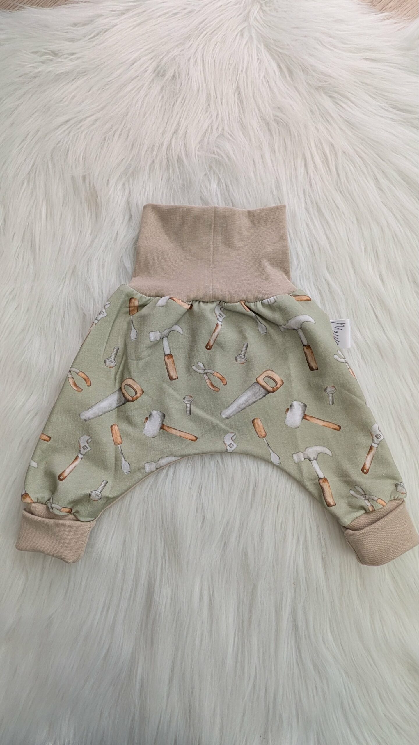 Die Mitwachshose wurde nach dem Schnittmuster Babyhose Broekje von “Lila-wie-Liebe” genäht, Lizenznr. 0296