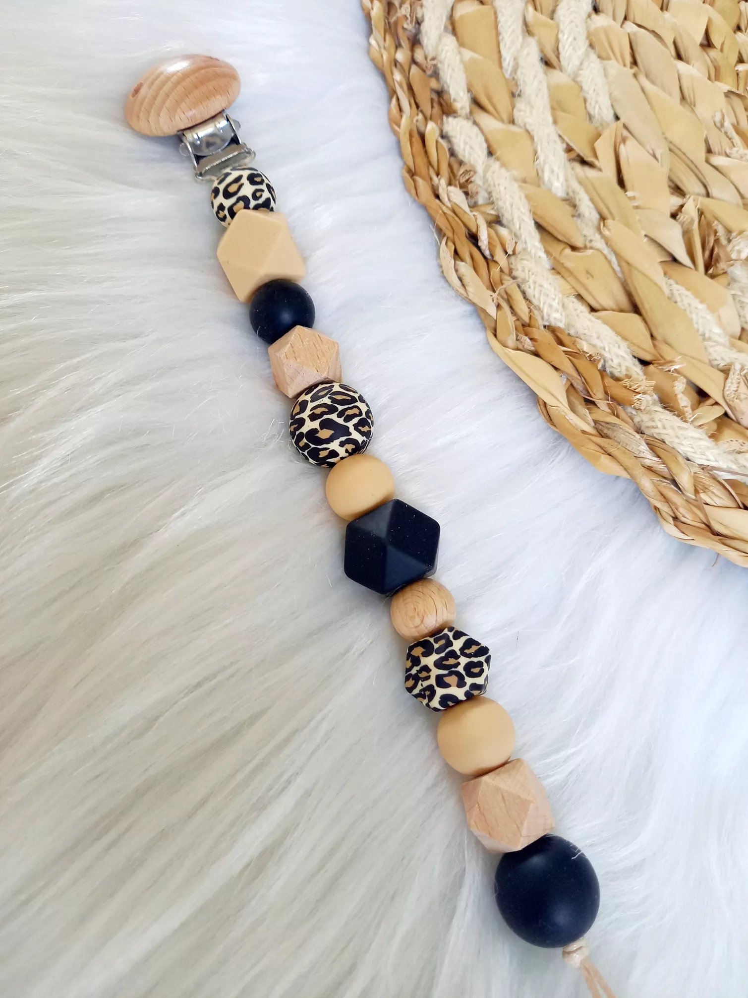 Dieser mit Liebe und Handwerkskunst entworfene Schnullerclip verleiht nicht nur eine persönliche Note, sondern hält den Lieblingsschnuller deines Babys auch immer in Reichweite.